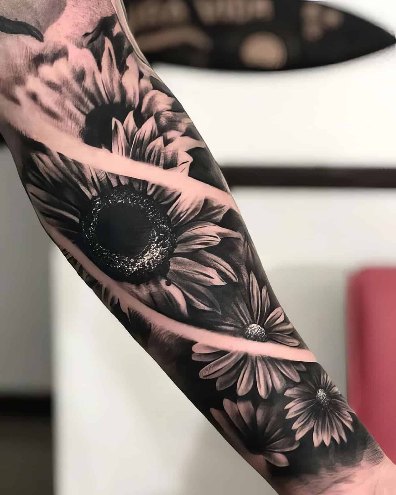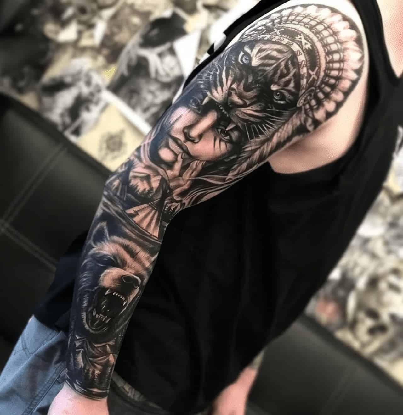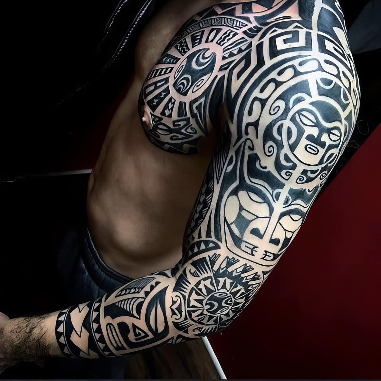 These tattoos are perfect if you’re looking to make a statement. Start small and keep adding over time. Your arm becomes a canvas for creativity, showcasing everything from tribal designs to surreal scenes involving higher powers and mythical creatures.