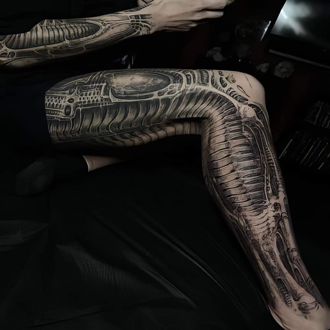 They’re not just ink; they’re conversation starters, making people do a double-take. Perfect for anyone looking to make a statement without saying a word, biomechanical tattoos are as hardcore as it gets in the ink world.