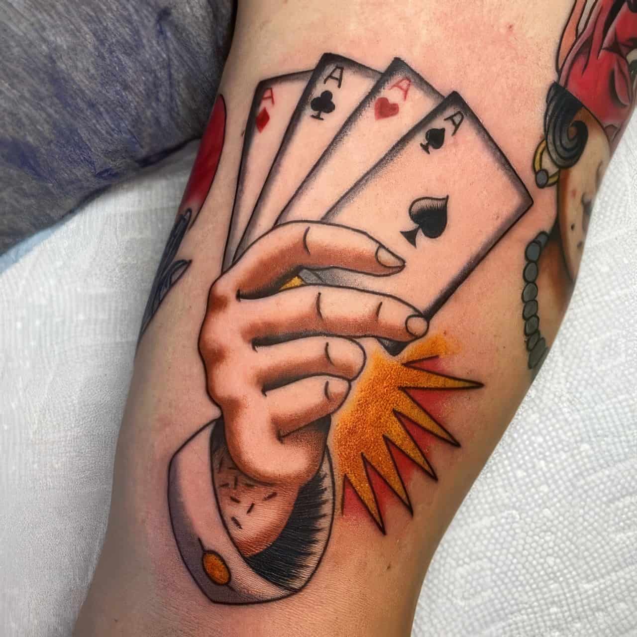 Absolutely! How about inking your skin with symbols of good fortune? A four-leaf clover, a laughing Buddha, or even knuckle tattoos spelling out L-U-C-K might just do the trick.