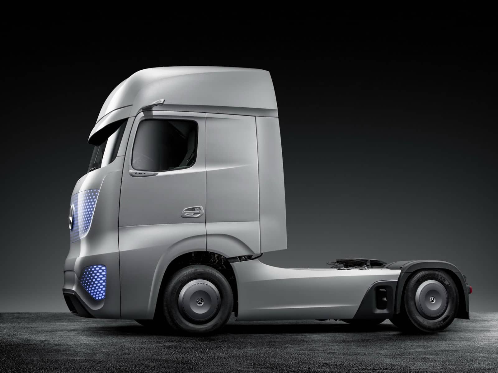 Just for fun, my wife and I from time to time discuss the idea of me becoming a truck driver and traveling across North America while she tags along. It’s certainly not something we would seriously consider but I’m sure there are couples (with no kids) out there who are probably doing something like this. I have an interest in all types of vehicles and the Mercedes-Benz Future Truck 2025 is definitely one of them. The truck is set to premiere at the 2014 International Commercial Vehicle show (IAA) and features state-of-the-art technology.