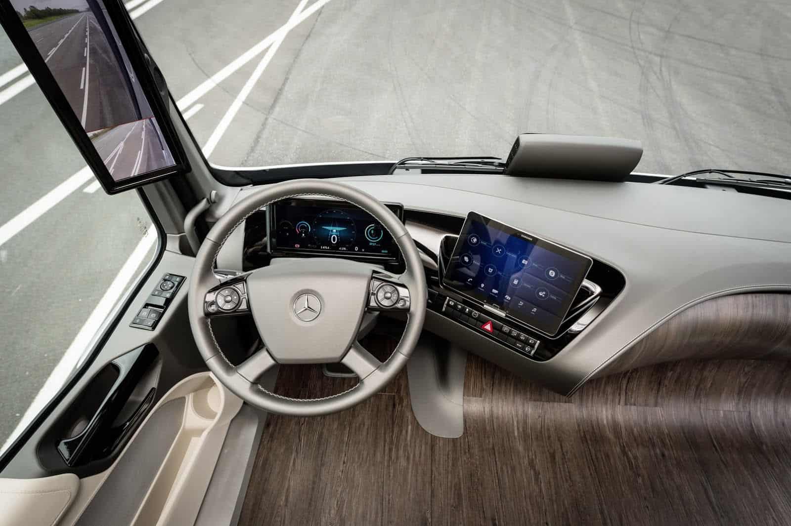 One of the major highlights on the Mercedes-Benz Future Truck 2025 is its autonomous driving system which has been tested in “realistic traffic conditions” at speed as high as 50mph on a section of the A14 motorway in Germany. According to Mercedes, the system works independently of traffic with the vehicle adapting speed within the permitted limit and maintaining a set safety distance from any traffic traveling ahead of the truck. The truck uses a number of radar sensors which scan the road ahead and around the truck, constantly sending information to all of systems in place. It also features a warning system that warns the driver about an imminent collision with stationary objects as well as a Blind Spot Assist system which notifies the driver about other road users when turning.