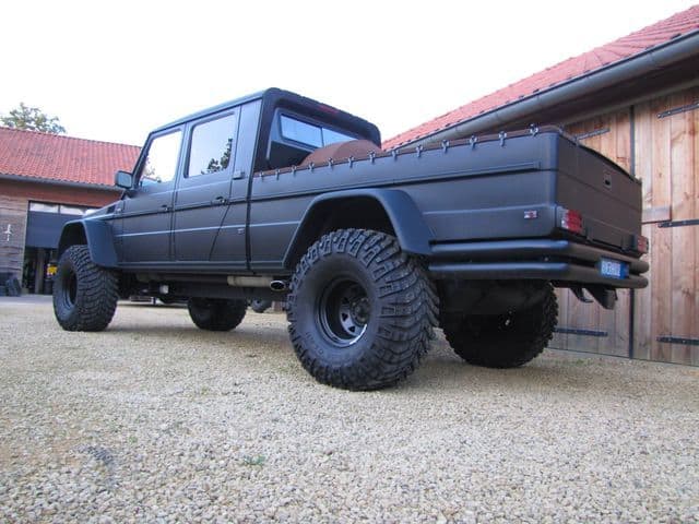 Like the Land Rover Defender, the Mercedes G-Wagon has history, is tough, and the overall design has remained pretty much the same since its inception. It’s pretty cool to see one of my favorite SUV’s converted into a sweet ass truck.