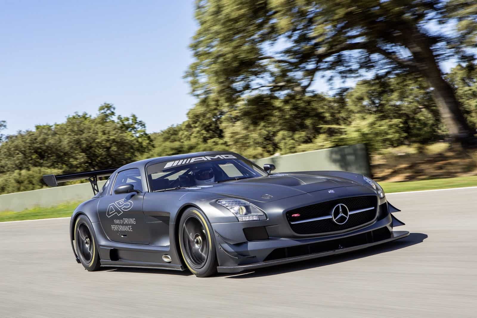 With three driver & team championships under its belt, the Mercedes-Benz SLS AMG Coupe has taken the European GT3 Series racing scene by storm. In celebration of AMG’s 45th anniversary, Mercedes has created the SLS AMG GT3 “45th Anniversary”, which according to the company, is marketed “at car collectors with a particular penchant for motor racing”.