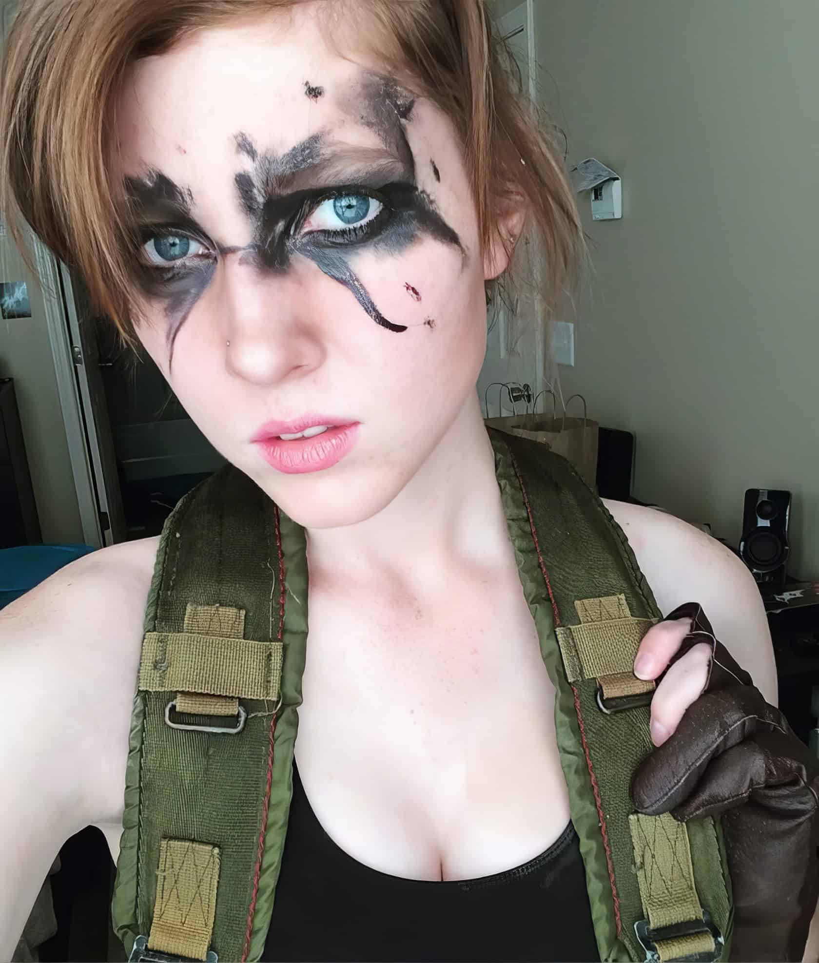 Once you have the hair down, it’s time to perfect Quiet’s signature makeup from Metal Gear Solid V. Her look is all about creating a “demon mode” effect around her eyes.