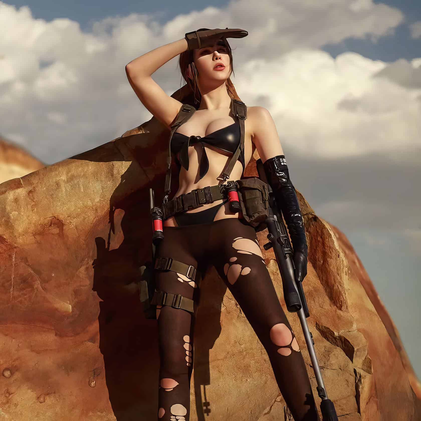 While the tactical bikini might be the first thing people notice, the black ripped stockings are what really complete an accurate Metal Gear Quiet cosplay. In MGSV, the designers chose these for a practical, in-universe reason: some real-world snipers have used compression gear to improve blood flow on long missions. So, they look cool and make perfect sense for a soldier.