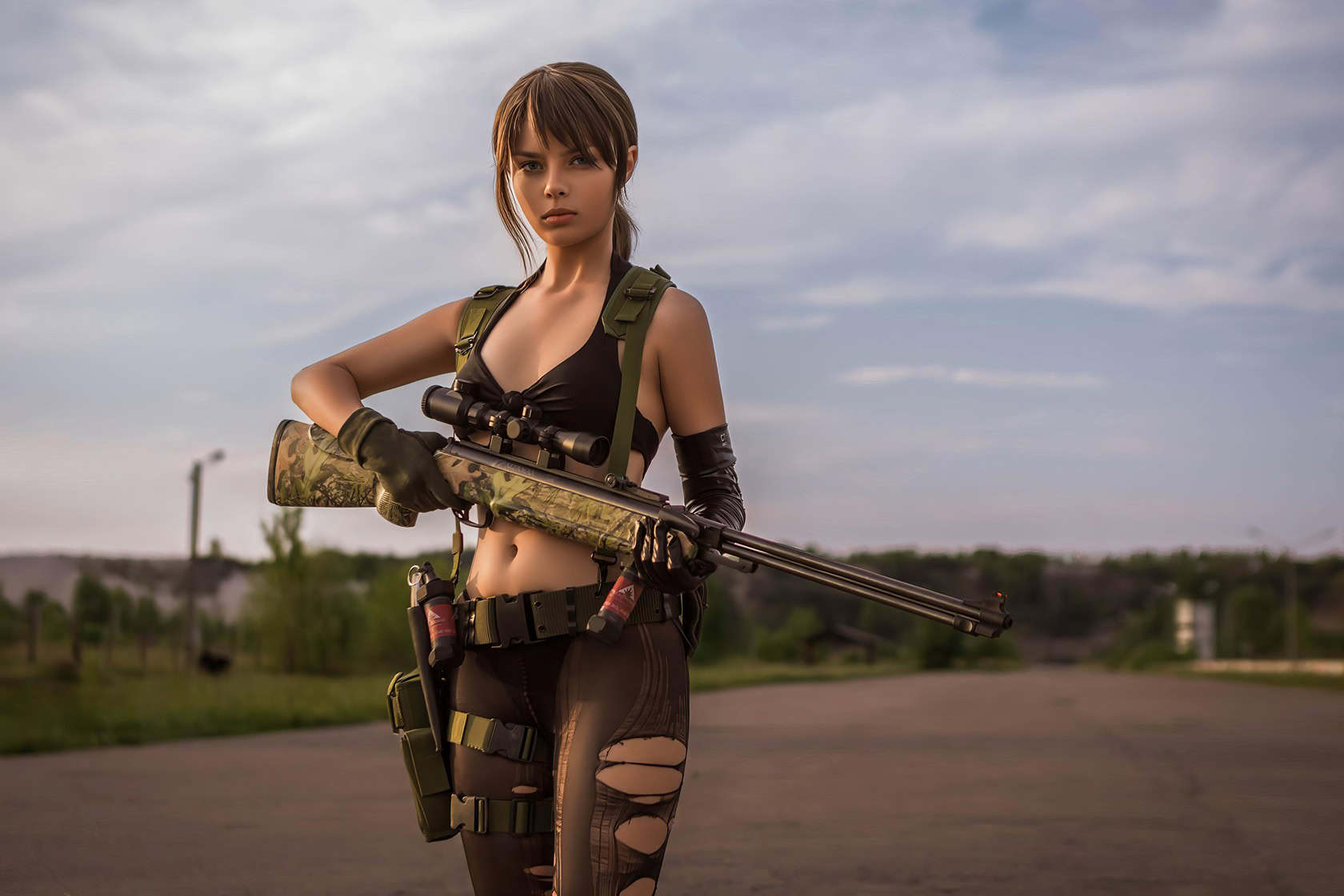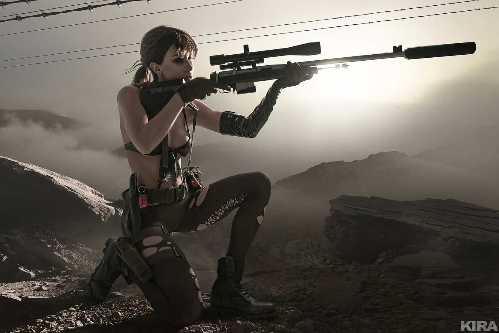 Quiet’s look is all about detail—her stockings don’t just complete the outfit, they shout sniper without saying a word.