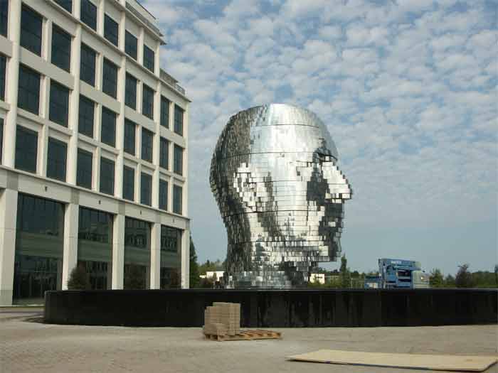 The sculptors creator, David Cerny, designed this piece for the American Asset Corporations 3701 Whitehall Corporate Center in North Carolina. Why they would want a giant metal head I couldn’t say, but it’s an interesting move just the same. The sculpture is made of 14 tons of stainless steel, shaped int0 7 rotating portions. Without the rotating bits, this would just be a run of the mill giant shiny metal face, but with the addition of 7 points of movement, well… that brings Metalmorphosis to a whole new level.