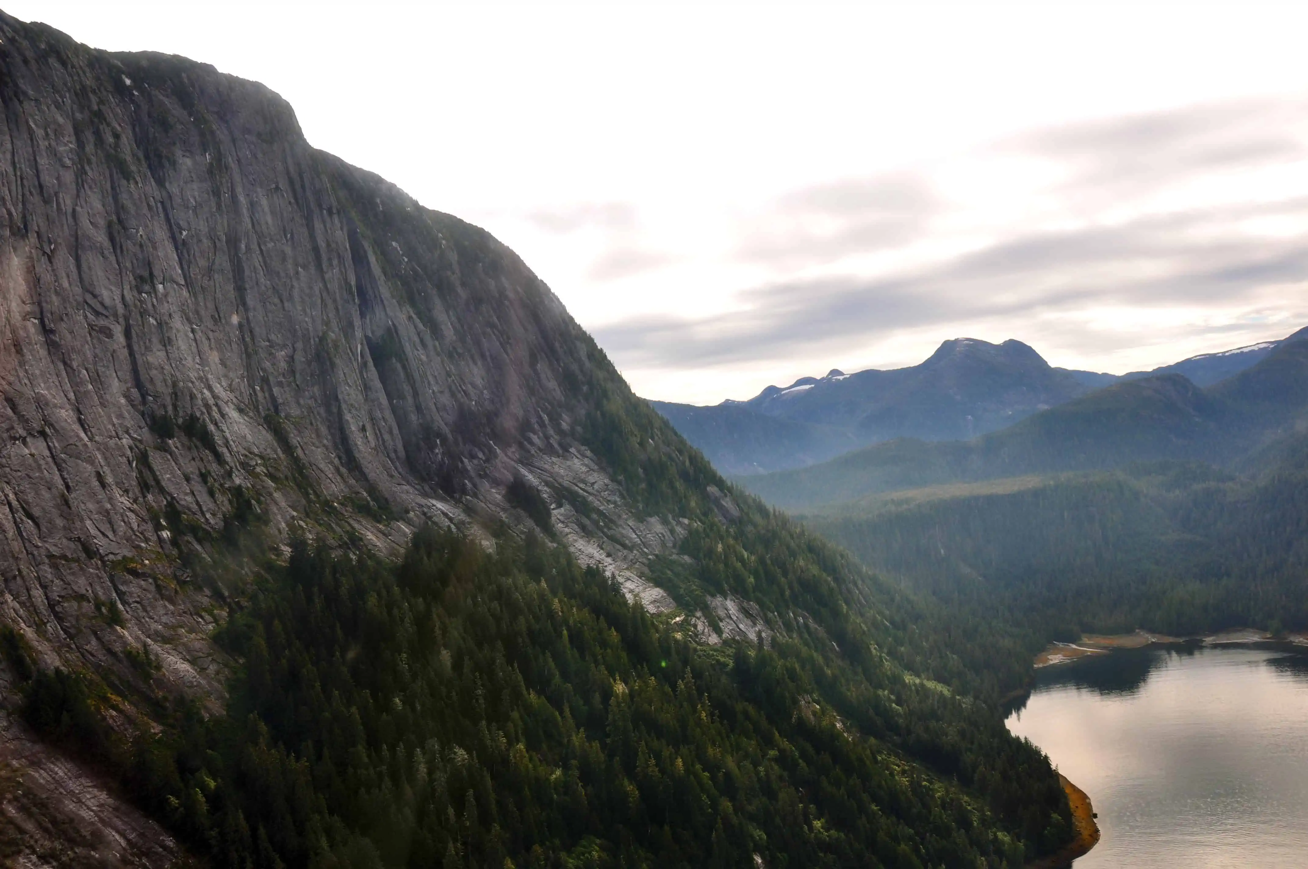 The Misty Fjords National Monument is over two million acres of dense forest, brilliantly colored marshland, and pocket lakes formed by chunks of melting ice abandoned by the recession of glaciers. They shine like brilliant mirrors nestled away in crimson and ochre velvet, and the coruscating glare of the sun off of their surfaces gives the appearance of splintered glass scattered through the backwoods. The sheer cliffs of granite, carved into deep v’s by the immeasurable and unstoppable force of glacial walls, trap sea water and embrace pockets of old growth between faces that reach thousands of feet towards the sky. One of the dearest joys in my life is to hike into a thicket in an unknown direction just to see what waits just out of view, but here, the expression about not being able to see the forest for the trees is the absolute truth. While I don’t doubt that a hike through the Misty Fjords would be gorgeous, it is impossible to understand the terrifying beauty and the expansiveness of the world until you fly above it and experience it through the eyes of a bird.