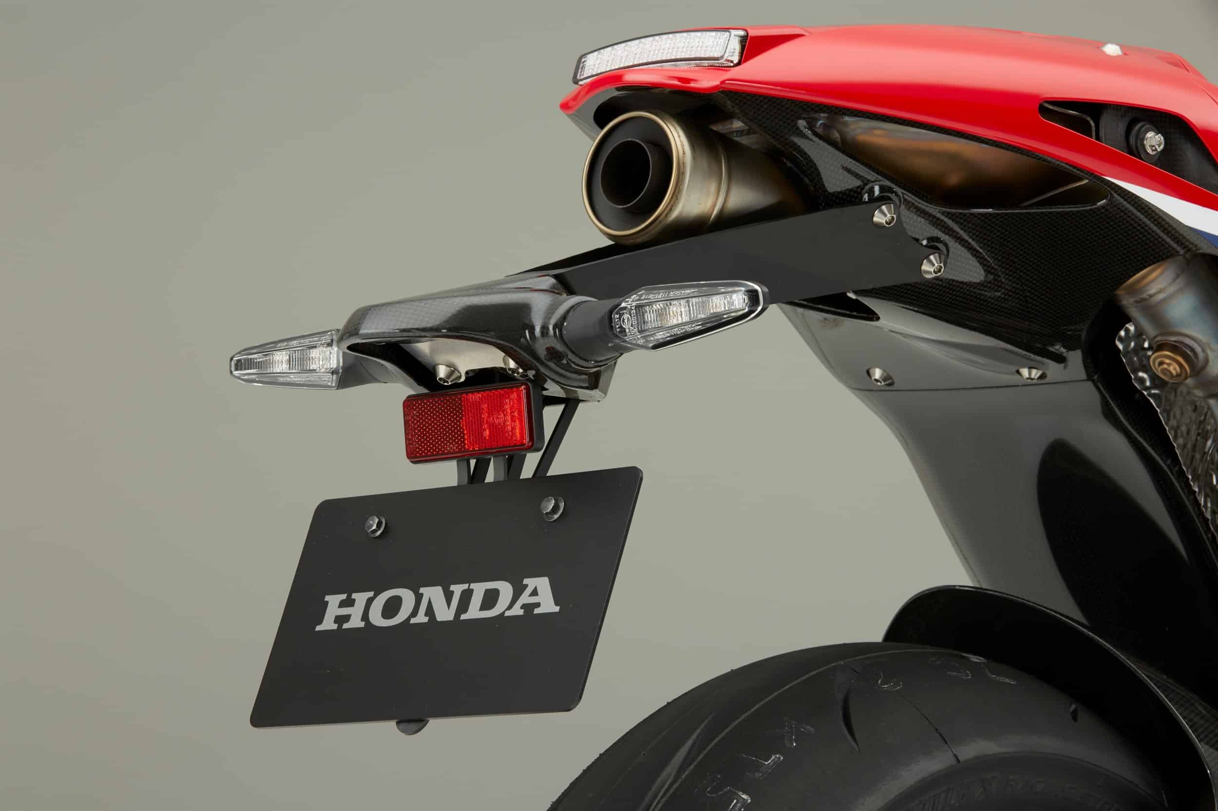 The Honda RC213V-S is powered by the same 1.0 liter liquid-cooled V4 engine found on the MotoGP bike, producing 157 horsepower and 75 pound-feet of torque in this guise instead of 235 HP in the racing bike; that’s still a hell of a lot of power. But if that’s not enough, Honda is also offering a track-only version of the bike, not available in North America, that has 212 HP and 87 pound-feet of torque. The street version of the RC213V-S weighs 375 pounds, while the track-only version weighs 353 pounds, which is pretty close to the 348 pounds weight of the MotoGP bike.