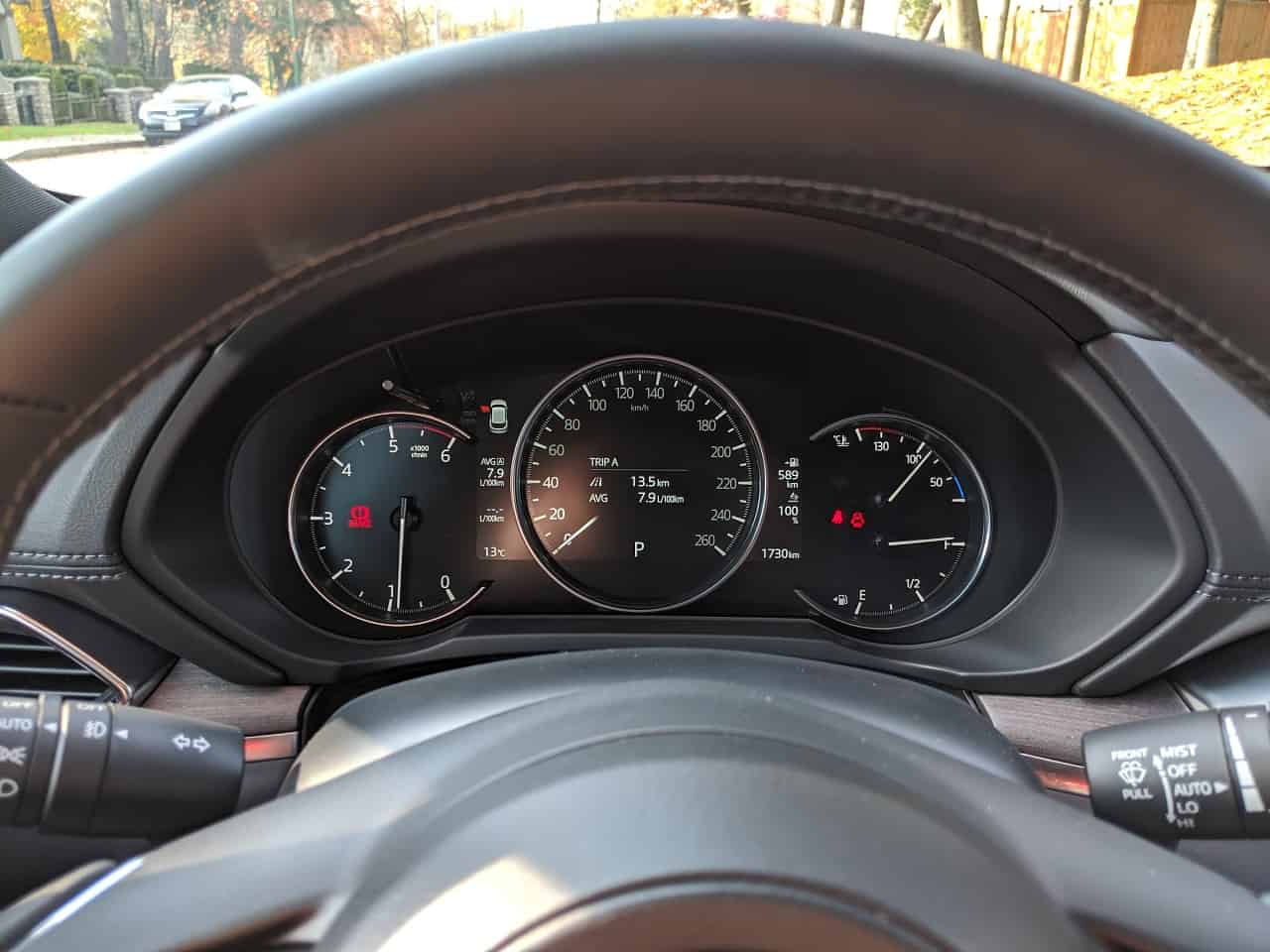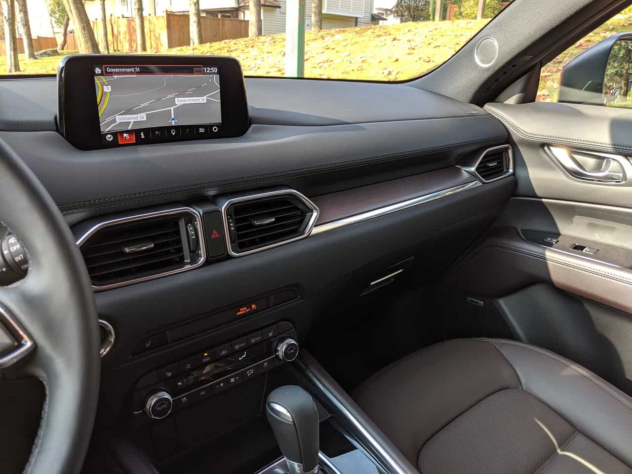Diesel engines are known for their fuel efficiency, especially on the highway. The 2019 Mazda CX-5 Diesel is rated at 8.9/7.9/8.5 liters/100 kilometers in city/highway/combined driving. Comparing it to the gasoline powered CX-5 Signature, the 2.5-liter turbocharged gasoline engine consumes 10.8/8.7 L/100 km in city/highway driving. The diesel engine is about 20% more efficient in the city and 10% on the highway, which is the opposite of what I was expecting; I expected the diesel to be more efficient on the highway. Also, diesel is normally a bit cheaper than gasoline, which increases the difference between the fuel consumption of gas vs diesel when converted into dollars, however, the week I was reviewing the CX-5 Diesel, regular gasoline was priced at $1.409 and diesel was priced at $1.519, which is a difference of just over 7% premium on diesel fuel.