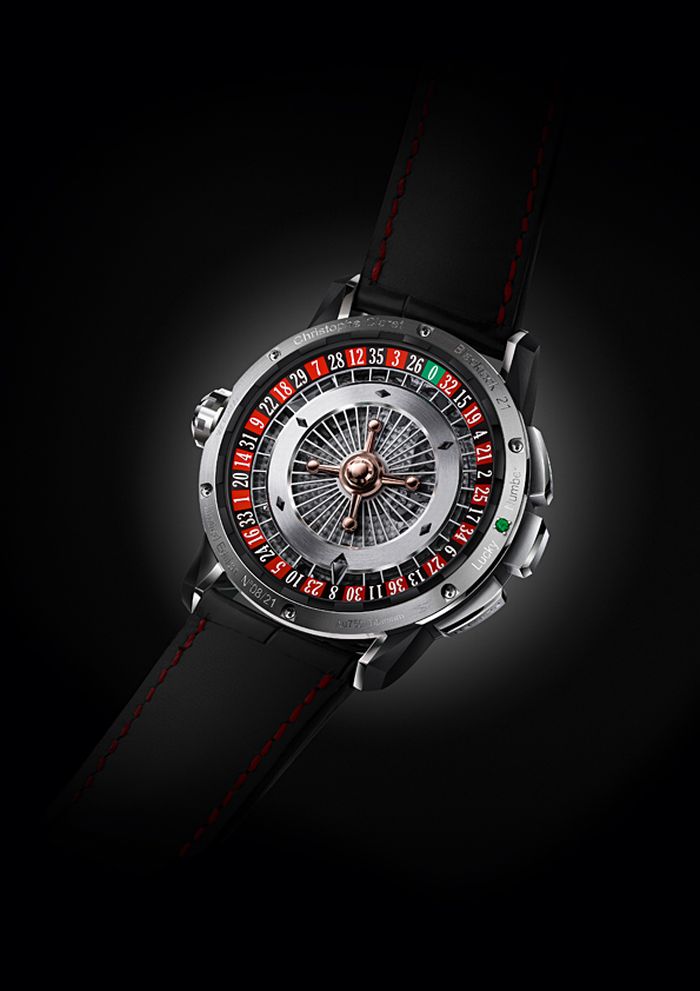 Roulette – the back of the watch features the roulette wheel that is covered with an anti-glare sapphire crystal. The roulette wheel goes into motion with an undulating movement or two. Place your bets and hope for the best.