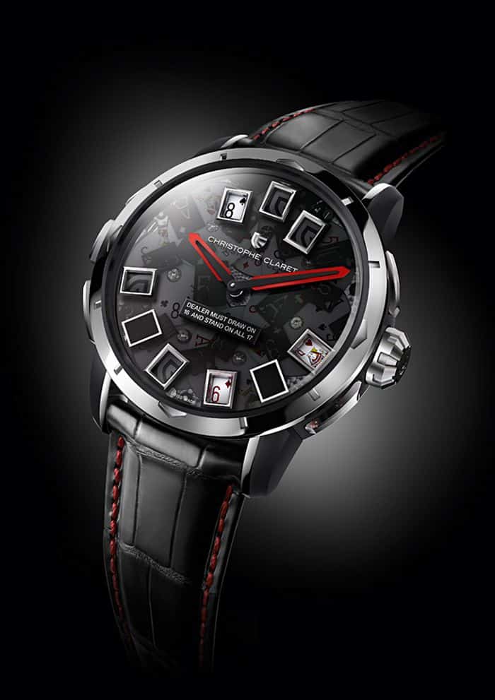 The brand new watch by Christophe Claret, 21 Blackjack, is the ultimate watch for Daniel Ocean, and will probably be featured in the next Ocean’s 14 movie (if ever produced). It is a bit on the gimmicky side, but I think it’s pretty cool nevertheless. I mean who doesn’t want to start a spontaneous game of Blackjack at a business meeting, or anywhere else as a matter of fact?