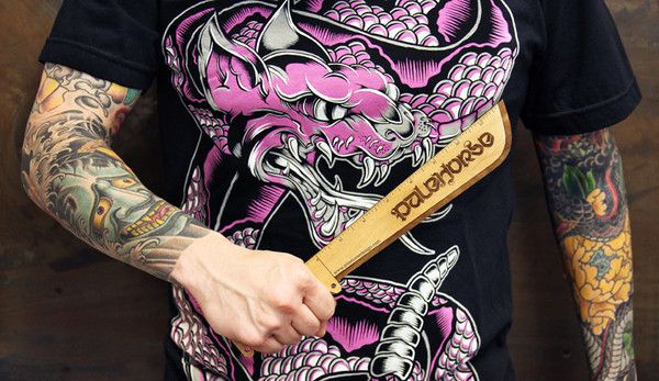 The precision of the laser engraving is amazing- the edge, rivet and handle detailing are all top notch and really make me want to flail around at my plants rather than do any practical measuring tasks. I’m actually a big fan of the Pale Horse logo as well, because the typography is gorgeous…but mostly because it gives me an excuse to roll at someone on my desk chair brandishing my machete ruler, screaming “behold, before you is a pale horse, and on it sits Death!” These wooden rulers are limited edition (however many that may mean) and are $20, which is a pretty decent price for such an oddball yet high quality gift. Each machete ruler comes in a nice gift box/sheath, and you can buy them here at the Pale Horse store, along with laser engraved wooden nun-chucks and Jesus in a luchador mask vigil candles.