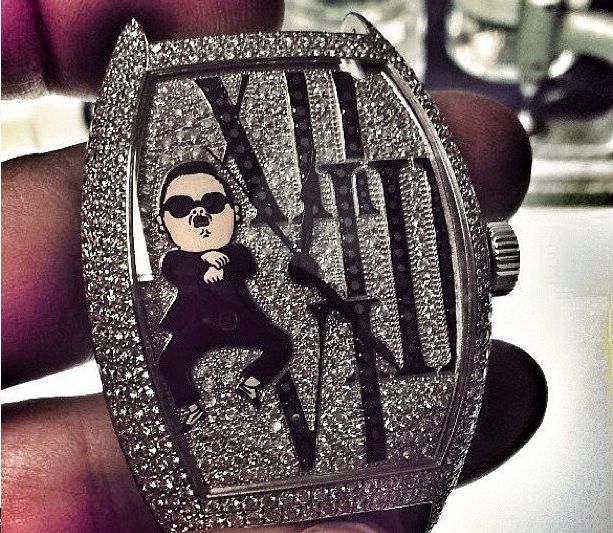 With that out of the way, Swiss watchmaker, Franck Muller has produced a one-of-a-king watch for PSY that features an image of the famous PSY horse riding dance; I’m assuming FM will be gifting this watch to the Korean singer.