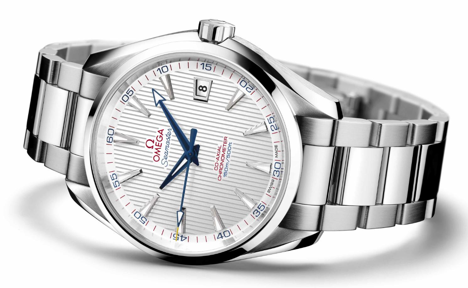 The Captain’s Watch comes in a 41.5mm brushed and polished stainless steel case with a polished bezel and polished/brushed combination stainless steel bracelet. The watch is powered by Omega’s caliber 8500 co-axial automatic movement which is visible through the sapphire crystal case-back. The dial is also covered with sapphire crystal and features the vertical “teak-pattern” lines found on the Aqua Terra line of watches.