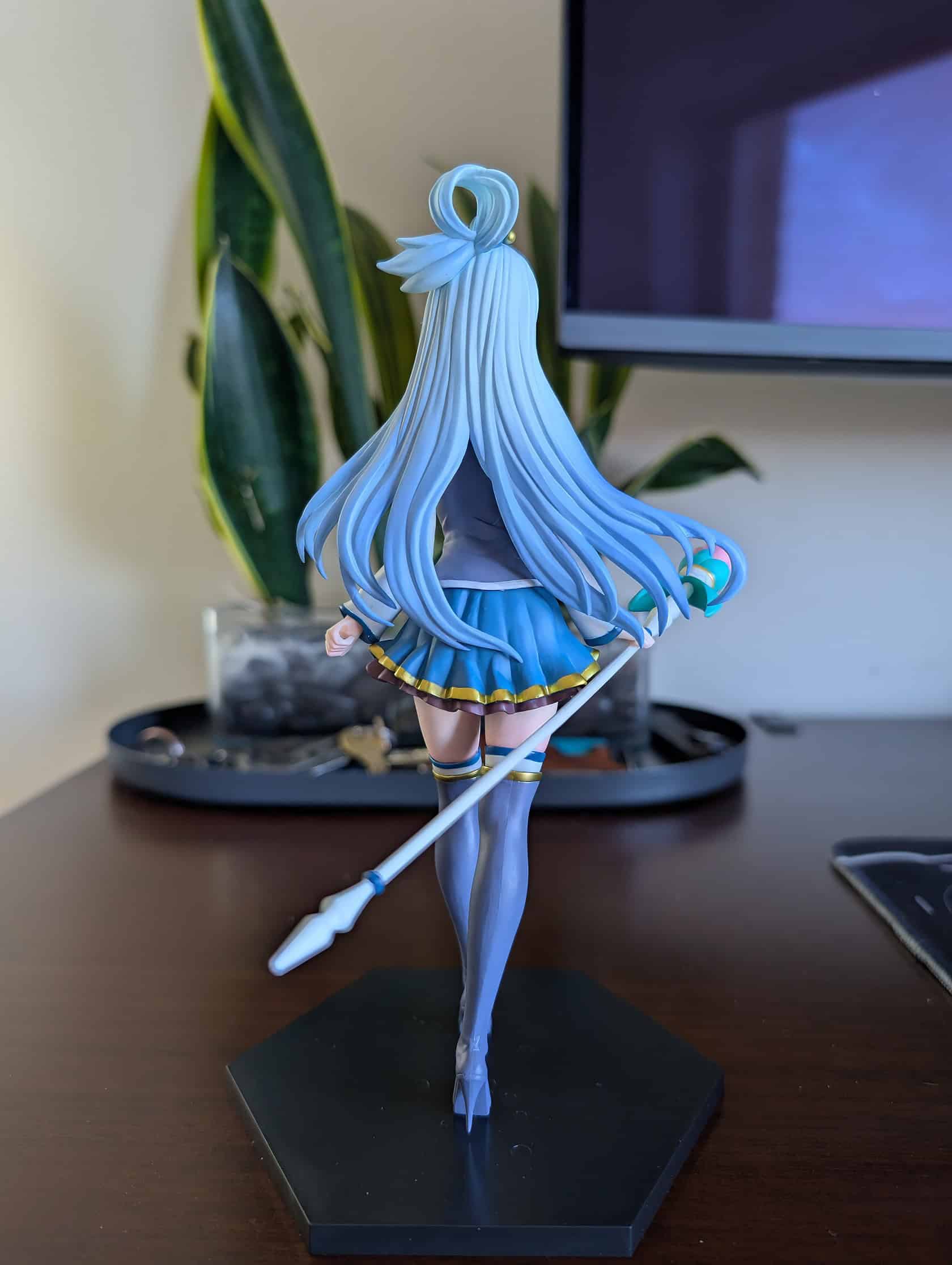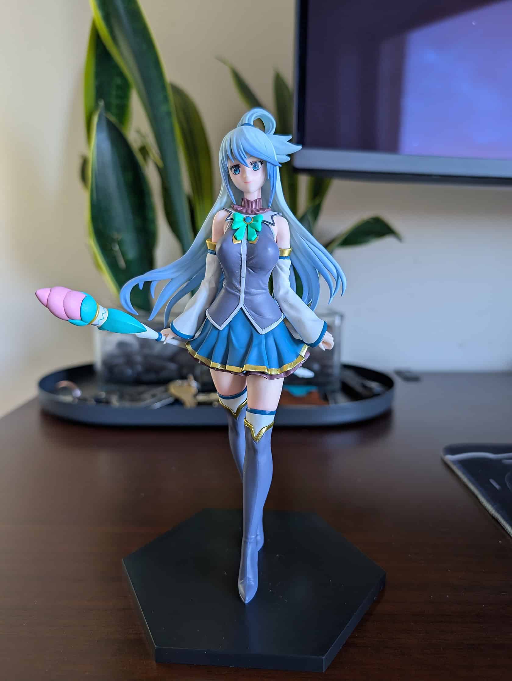 I was amazed at the accuracy of her vibrant blue hair and eye-catching costume. Aqua struggles through battles in the anime series, but this figure clearly wins in displaying her personality.