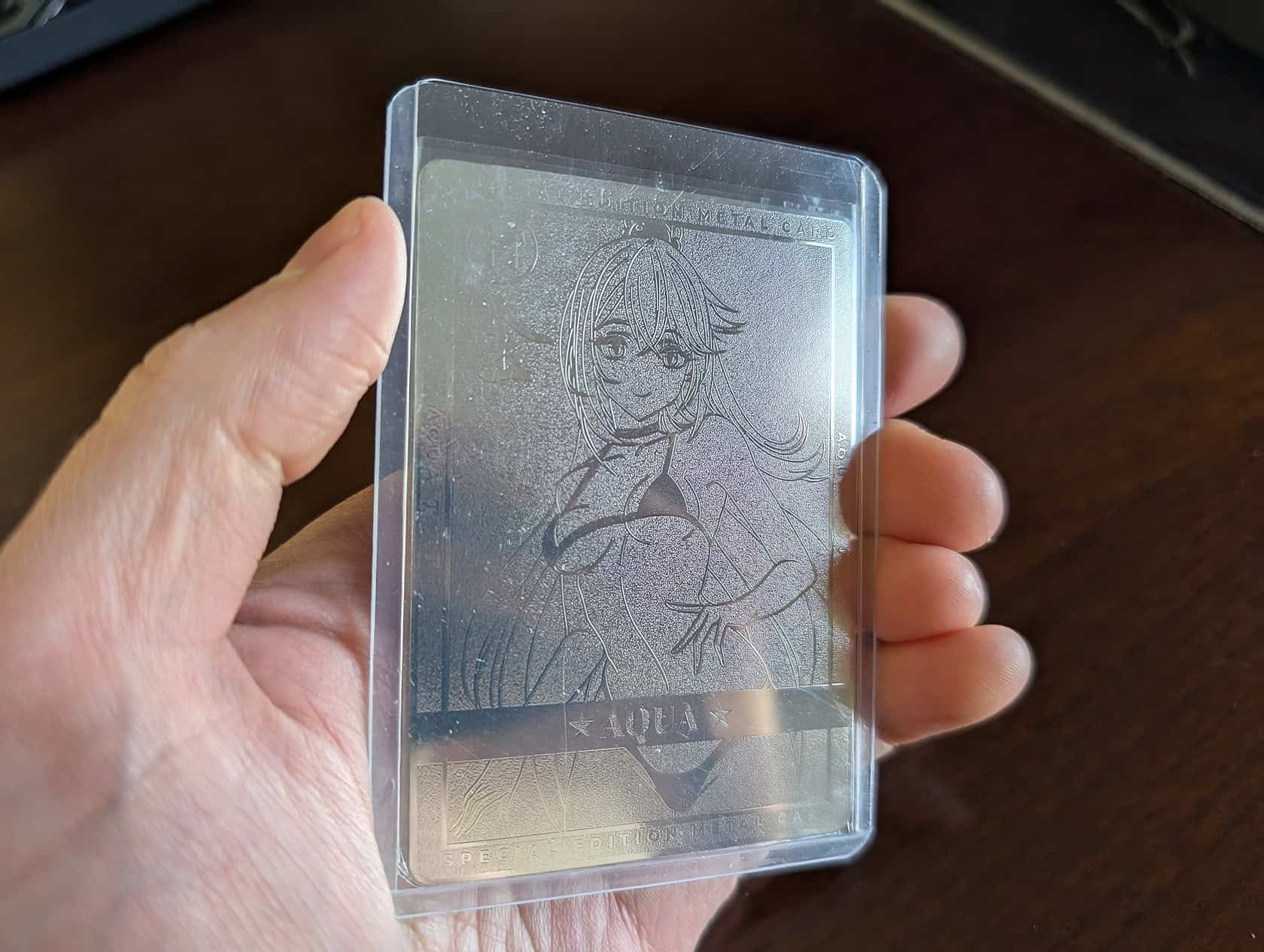 Also impressive are the holographic and metal Aqua cards, crafted with skill. Bright colors shine vividly from each angle, giving the cards extra character. In particular, the metal version feels satisfyingly heavy—adding real value to the Otaku Box subscription.