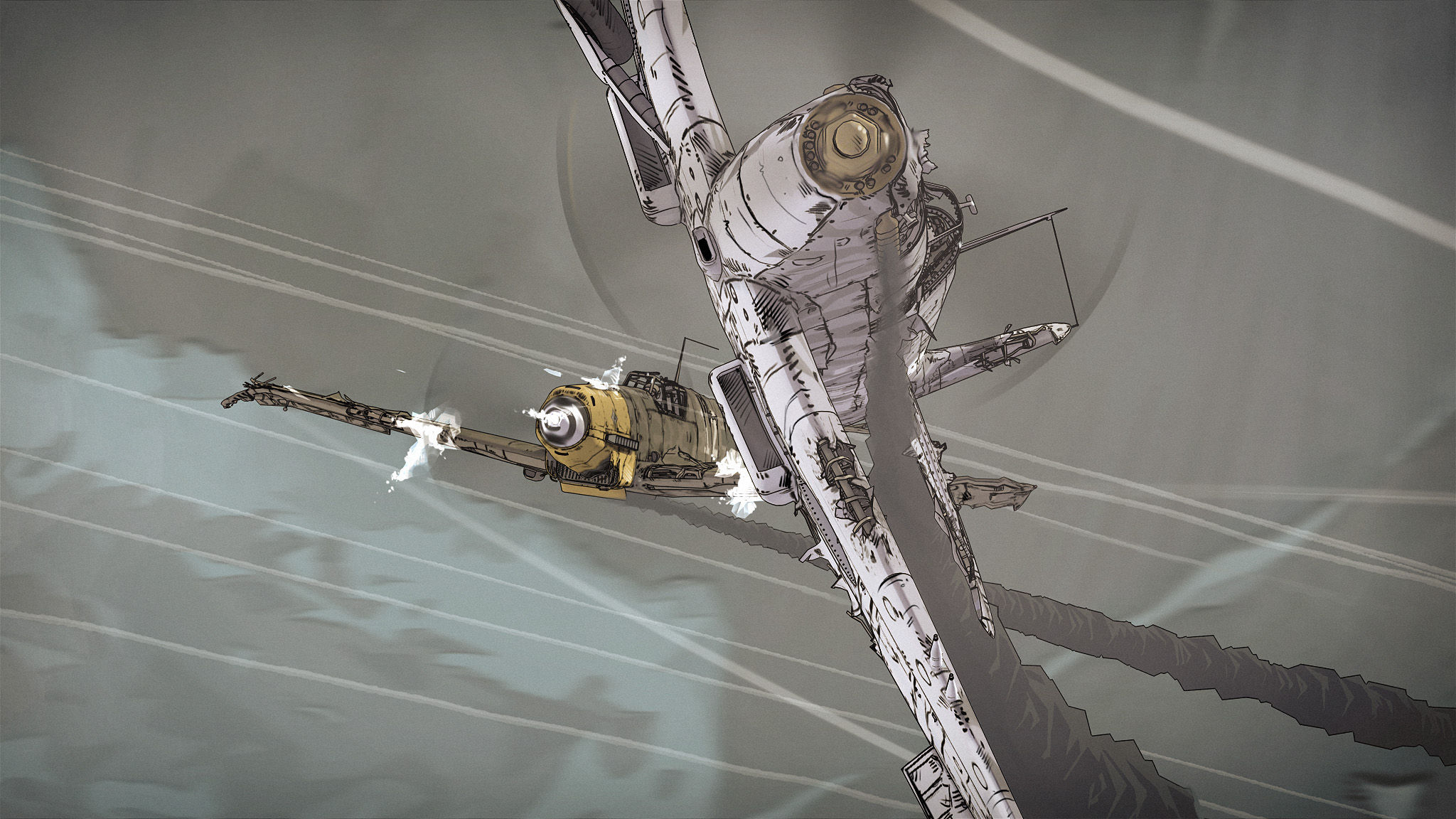 What I like most about this trailer is the art style. If you’ve ever seen A Scanner Darkly, perhaps you’ll agree with me that the scenes in Paths of Hate look almost rotoscoped. I think that’s a good thing. The characters, aircrafts, and the world itself all look realistic in a sense, but with an obvious painted quality. The music is equally fantastic and seems to match the scenes unfolding on the screen perfectly.