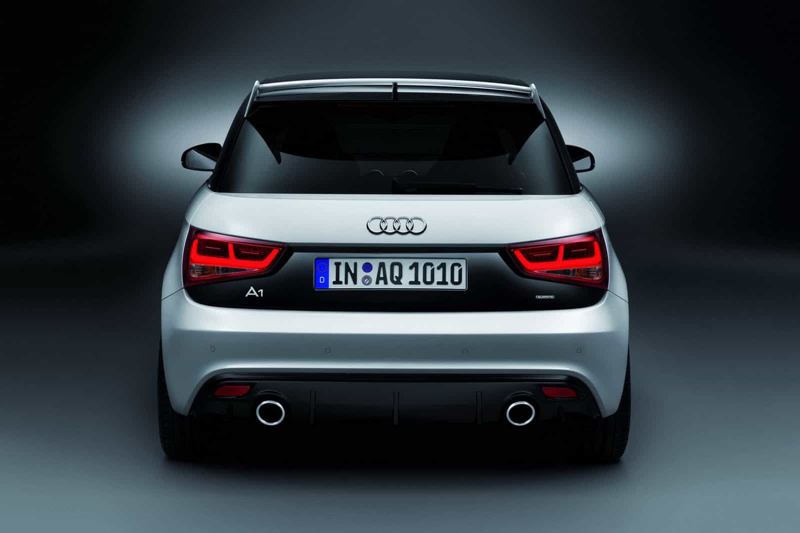 The car’s white body and wheel paint scheme takes inspiration from the Quattro rally cars of the 80’s. The A1 Quattro features a very sporty exterior with an aggressive front bumper with large air-intakes, side skirts, a rear diffuser, and a roof mounted spoiler. The car rides on 18” cast alloy wheels with 225/35 series tires.