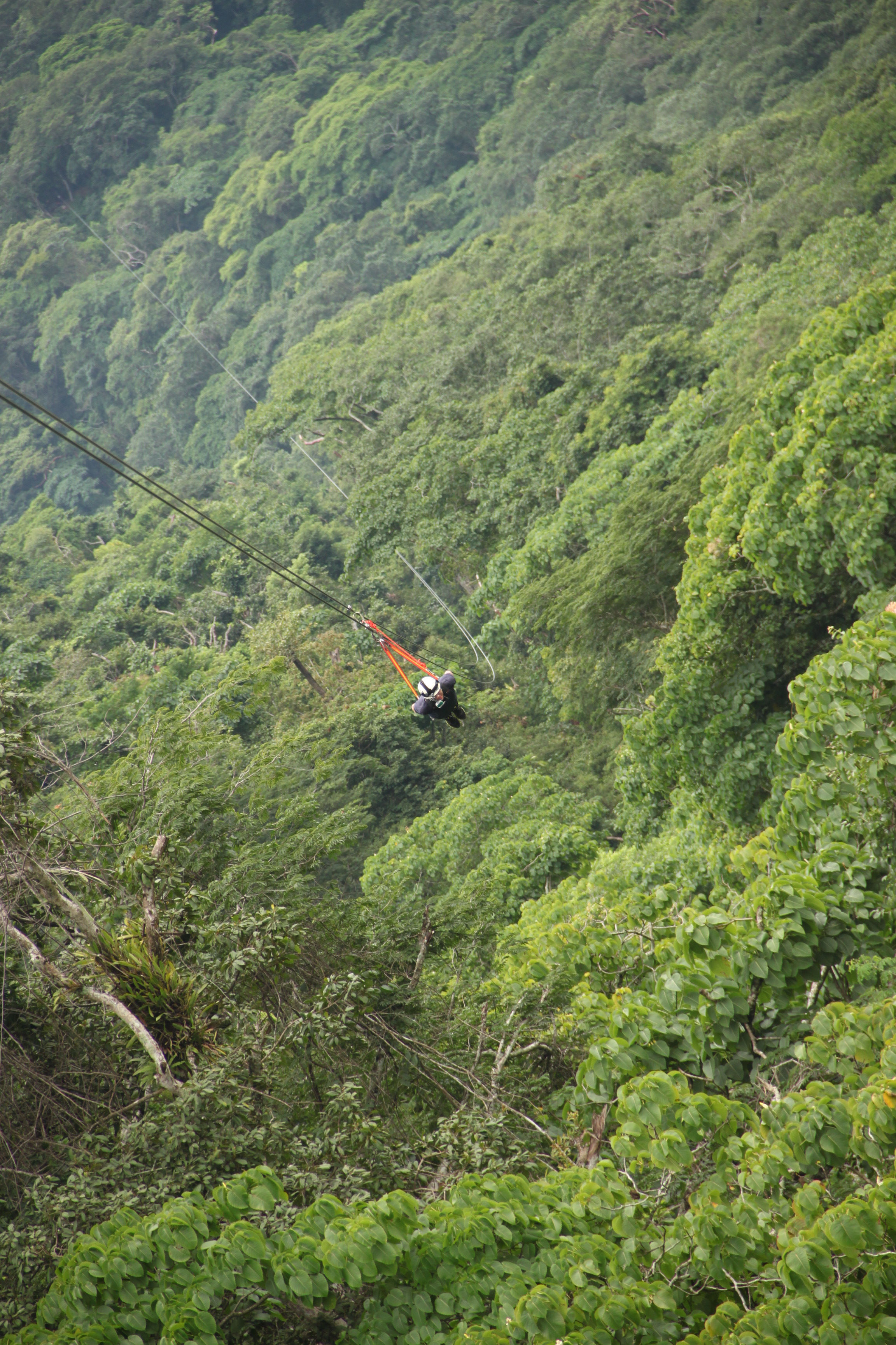 When you reach the longest and fastest zip line, they wrap you in a safety harness, sort of like a giant baby carrier. The safety equipment is checked and inspected beforehand by guides with over 200 hours of training so that you can feel secure. You get to enjoy the view of the canopy of trees at what feels like a reasonable speed for a few seconds immediately before gravity does its thing, and you drop into 60 MPH forward motion. This is flying, folks. It is flying over 4,000 feet on the longest and fastest zip line in Mexico.
