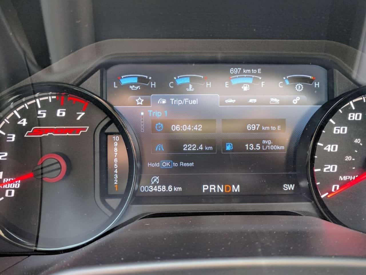 After a week’s worth of driving, the on-board computer showed 14.4 L/100 km in pure city driving and 13.5 L/100 km in 80/20 city/highway driving. My review of the 2016 F150 with the same 3.5 liter engine (with less horsepower) and same type of driving netted me 15.5 L/100 km in combined 80/20 city/highway. So the 10-speed automatic transmission definitely did improve fuel consumption and the 2017 F150 also comes with engine start/stop, which I’m sure helped a bit too.