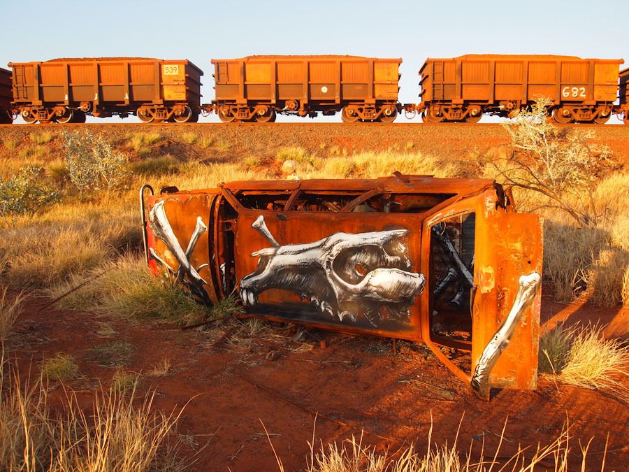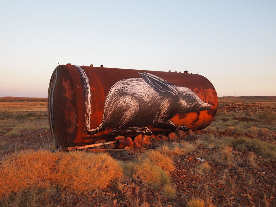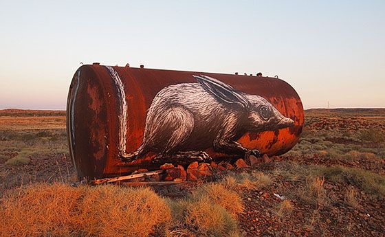 This entire set – if you can call it that – is of ROA’s work from Australia, and the animals are appropriately Australian themed. ROA’s work features Bilby’s, which I had never heard of, and more wholesome animals, such as kangaroos (both dead and alive) and emus. All of the pieces look fantastic, and ROA has integrated them into the buildings and heaps of scrap metal in very interesting ways.