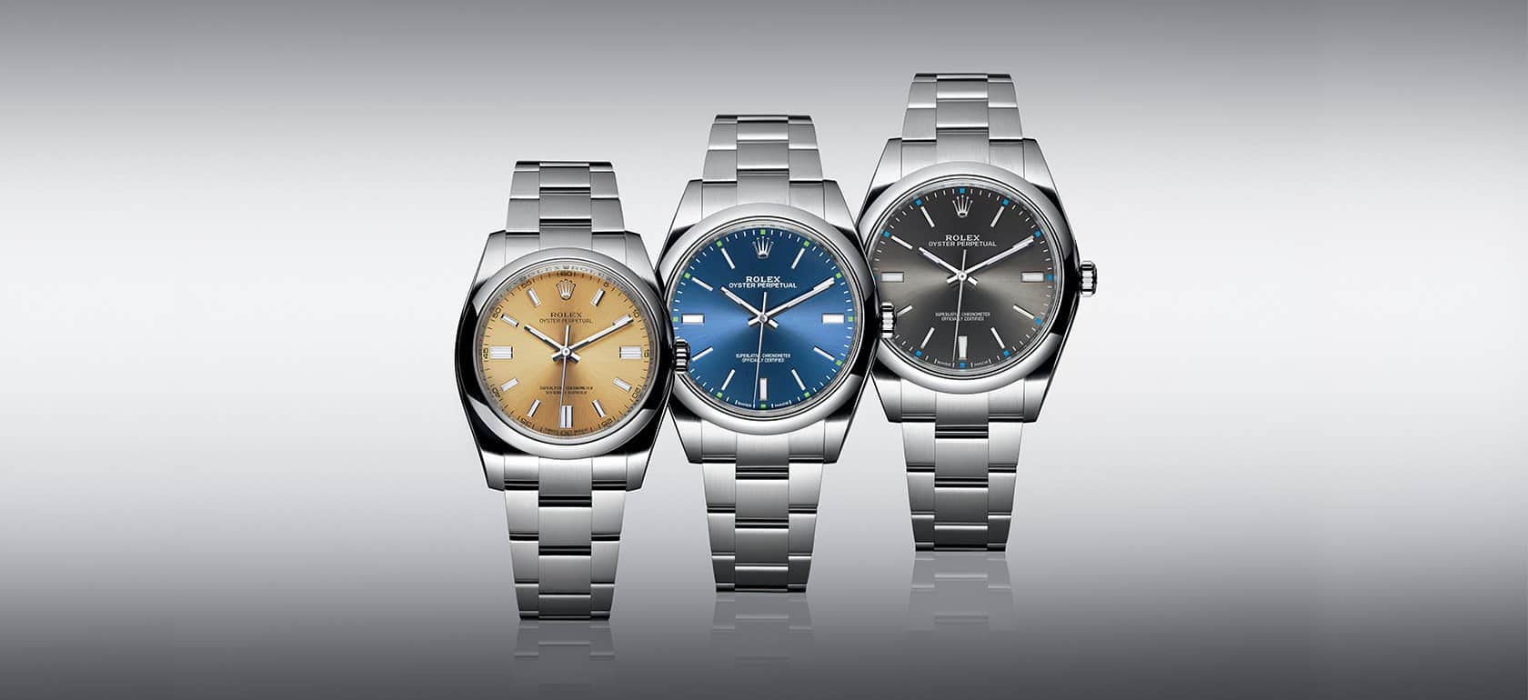 The Oyster Perpetual 39 has a very simple, clean, and elegant look to it. The watch has been kept simple on purpose, and the simplicity gives it the classic look. The watch comes with a dark rhodium dial, three hands, and hour marker batons. The case is made out of stainless steel with a matching bracelet, the front of the watch is covered with a domed sapphire crystal. It’s powered by an in-house Rolex calibre 3132 self-winding automatic movement and is water resistant to 100 meters (330 feet). Via: Rolex