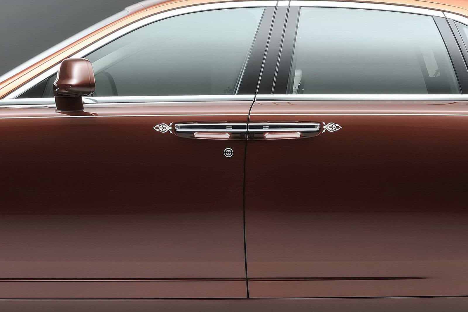 Rolls Royce hasn’t provided any details on this special edition Middle East car but we think the upgrades are mainly aesthetic and even then there aren’t many upgrades, I guess Rolls Royce just wants to squeeze a little extra profit out of the rich Arabs. The special edition Ghost comes in a two-tone paint and features pin stripes with a bit of traditional Arab design/sketches, I don’t know exactly what I’d call it, have a look at the picture on the right. The pin-stripes also feature “One Thousand and One Nights” written in Arabic alphabet below the c-pillar near the trunk.