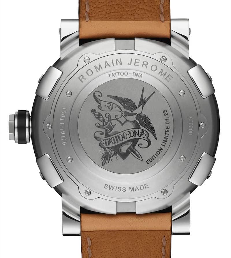 No human skin, but the watch does have something to do with tattoos; for this watch Romain Jerome teamed up tattoo artist Mo Coppoleta, founder of the tattoo studio The Family Business, based in London.