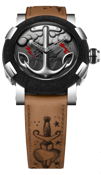 The Romain Jerome Tattoo-DNA watch has a nickname “A Sailor’s Grave”, I’m not sure what that means but I do know back in the 18th century, sailors used to get tattoos on their arms and chest as a form of protection from all the “evil” out on the seas. So there is a connection between sailors and tattoos, the video below might explain something, it’s quite trippy.