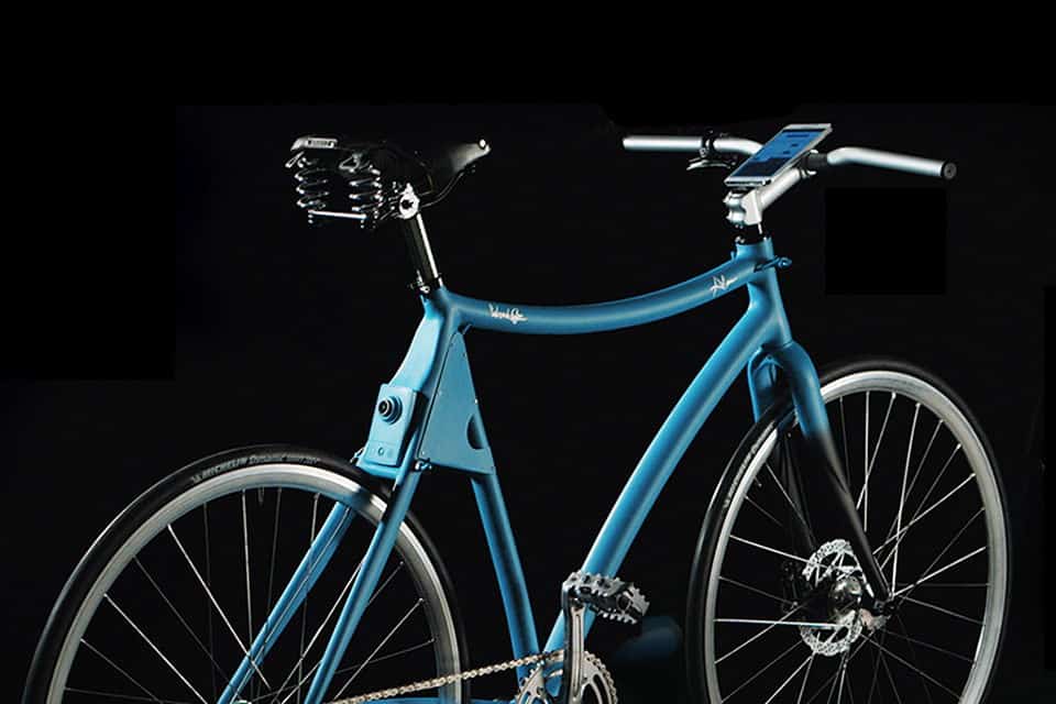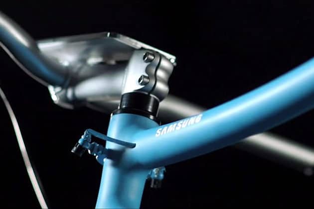 The Samsung smart bike is a little different from the Vanhawks bike; not only is the Samsung bike “smart” in terms of tech gadgetry, it also features a unique curved frame that reduces vibrations caused by potholes and other rough road conditions.