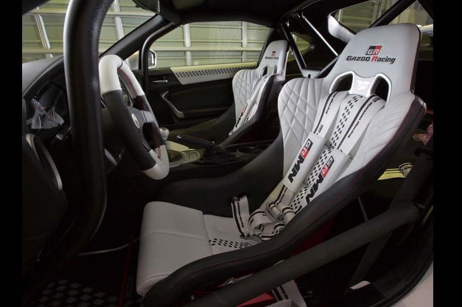 The Scion FR-S by Gazoo Racing is very race oriented and the interior definitely shows that with its bucket seats and four-point seat harness, full roll cage, and race oriented steering wheel. The goodies that matter most are tucked away under the hood of course. Gazoo Racing implemented a twin-charge system (turbocharger and supercharger) for the boxer engine which deliver 325 horsepower and 318 lb-ft of peak torque. No details are available about exact engine modifications but chances of it being simple bolt-ons is probably not it.