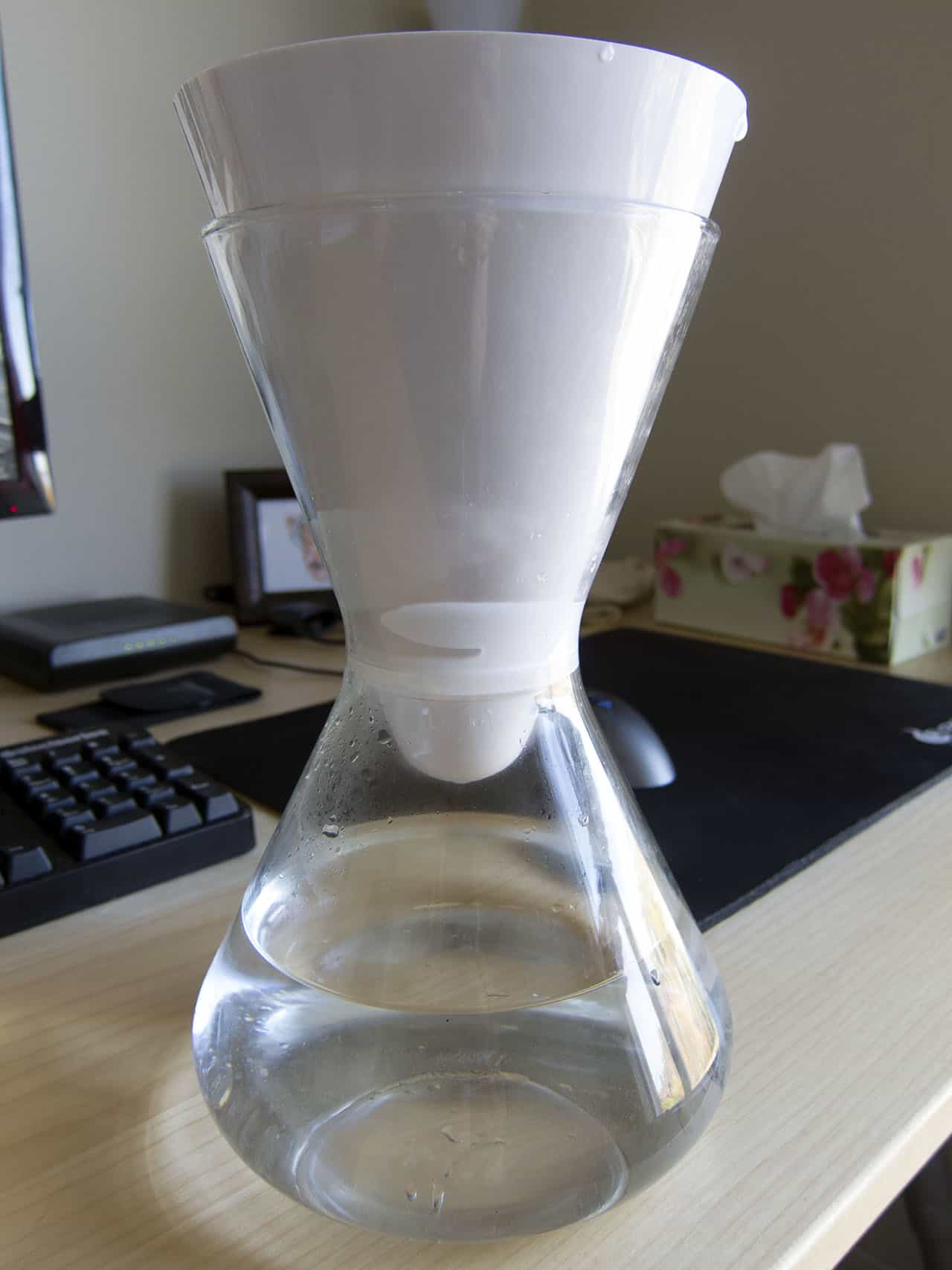 The Soma does a great job filtering water. The water here in Montreal usually tastes like runoff from a robot’s rusty anus, and after filtering it, the water tastes pure and clean. Maybe I just have low expectations, but I noticed the difference immediately. I’m guessing it’s the burnt coconut shells mixed with diamond dust (or whatever it is they use) that makes the difference.