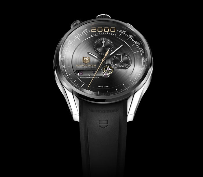 The TAG Heuer Mikrogrinder 2000 is one of the nicest TAG watches I’ve seen in a while and it’s the world’s fastest mechanical regulator watch. The watch’s chronograph is accurate to 1/2,000th of a second! I don’t know why you’d need that in a mechanical watch but it’s still an incredible feat. When the chronograph function is deployed, the second hand does a complete rotation 20 times per second, that’s fast enough to put you in a coma if you stare at it for a few minutes.