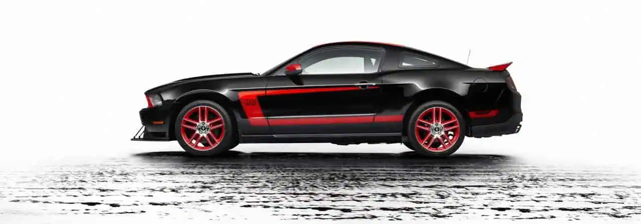 The exterior styling is inspired by the original 1969 Boss Mustang, with off color stripes on the doors and accented air intake area around the front grill and white or black painted roof. Five color choices are available; Race Red, Competition Orange, Performance White, Yellow Blaze Tri-coat Metallic, and Kona Blue Metallic.
