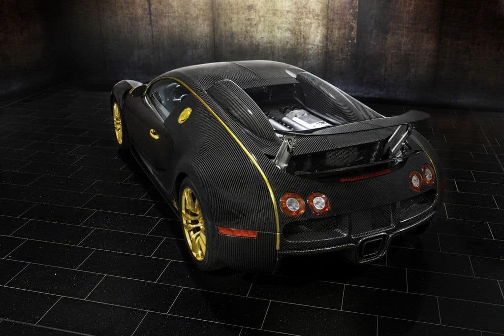 Mansory has created a Bugatti Veyron that is probably the “blingiest” and most expensive cars I’ve ever seen. The car is called Mansory Bugatti Veyron LINEA Vincerò and is made entirely out of hand-crafted carbon fiber and what’s not covered in carbon fiber, is covered in either leather or gold.