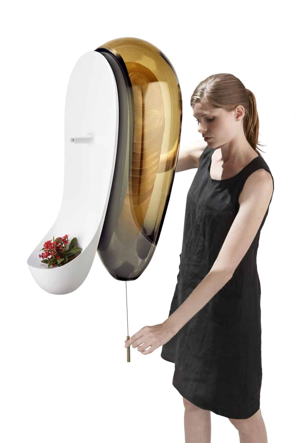 From Philips: “This is a sustainable, environmentally friendly product concept that has direct educational effects. The city benefits from the pollination, and humans benefit from the honey and the therapeutic value of observing these fascinating creatures in action. As global bee colonies are in decline, this design contributes to the preservation of the species and encourages the return of the urban bee.”The whole Urban Beehive design is slick and modern; it looks fast and spacey, with gentle curves and aggressive lines. Overall, it’s a pretty manly piece of work. The smoked glass looks automotive, and actually filters the orange light wavelength that bees use to see. The combs are arranged aesthetically, because those fuzzy stripey little bastards can’t be trusted not to mess up your feng shui. That little bell dongle-jigamadoo is your smoke actuator. The idea is, you pull the string, a gentle smoke is used to calm the bees, and you reach in and harvest the wonderful ambrosia of sweet honeycombs filled with natural, pure honey. Unfortunately, I don’t foresee this happening.