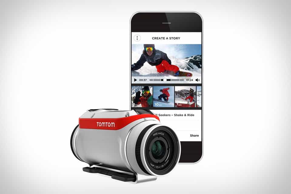 The TomTom Bandit action camera comes with a built-in 1900 mAh battery and a microSD car that can hold three hours of 1080p video shot at 30 fps. The Bandit action camera is water proof and comes with GPS, 16 MP CCD sensor, motion sensor, and USB 3.0. Priced at $399.
