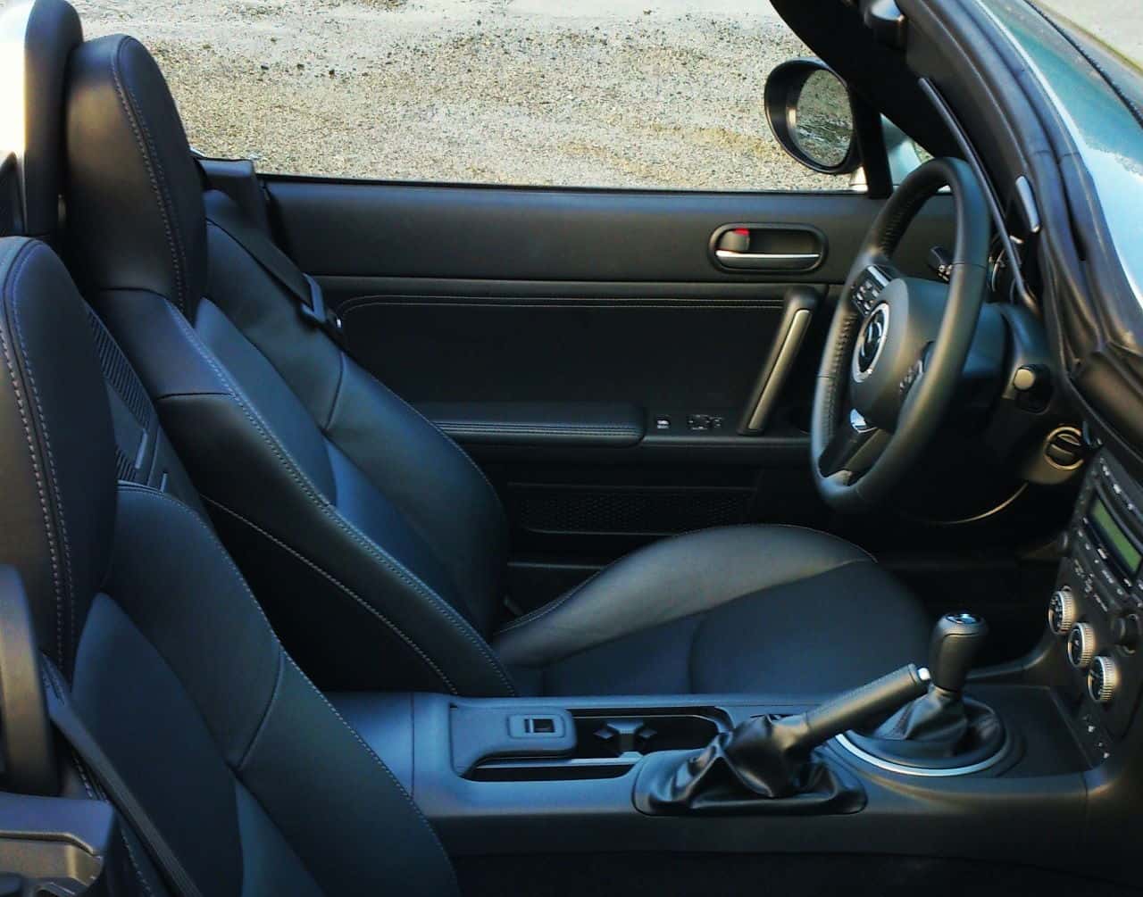The seats are very comfortable and come with manual adjustments; they were perfect for my 5’ 8.5” frame and there was plenty of room for me on the inside. The materials used throughout the car are hard-touch plastics, but they also work in this car. The interior is noisy and the hard-top doesn’t do much to reduce road noise, but this only enhances the feeling of being one with the road.
