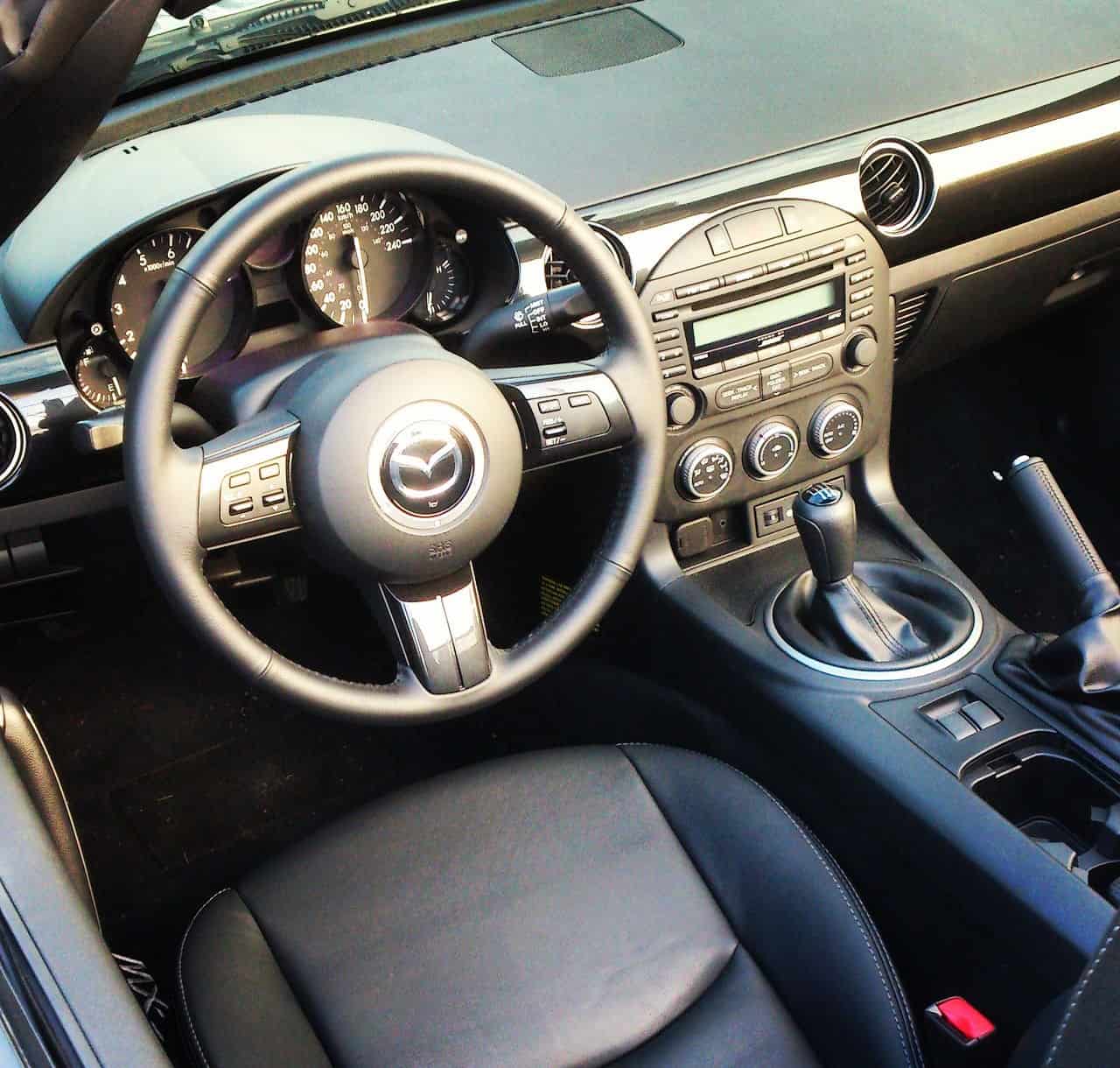 In the MX-5 you sit very low to the ground and that makes the driving experience that much more fun; you feel like you’re going a lot faster than you really are. You don’t need to go fast to enjoy this car, and the car begs you take it on twisty roads. The steering feel is great and it’s refreshing to feel a real steering wheel instead of all that electric crap the new cars have. You actually get to feel the bumps and twist in the road through the steering wheel. I loved it!