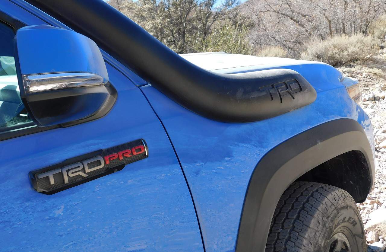 TRD, Toyota Racing Development, is Toyota’s performance division, products range from bolt-on parts to factory tuned vehicles like the ones we were testing. TRD badged trucks come in a variety of trims, some with visual upgrades and the TRD Pros are the top of the line vehicles with beefier suspensions, wheels and tires, and skid plates.