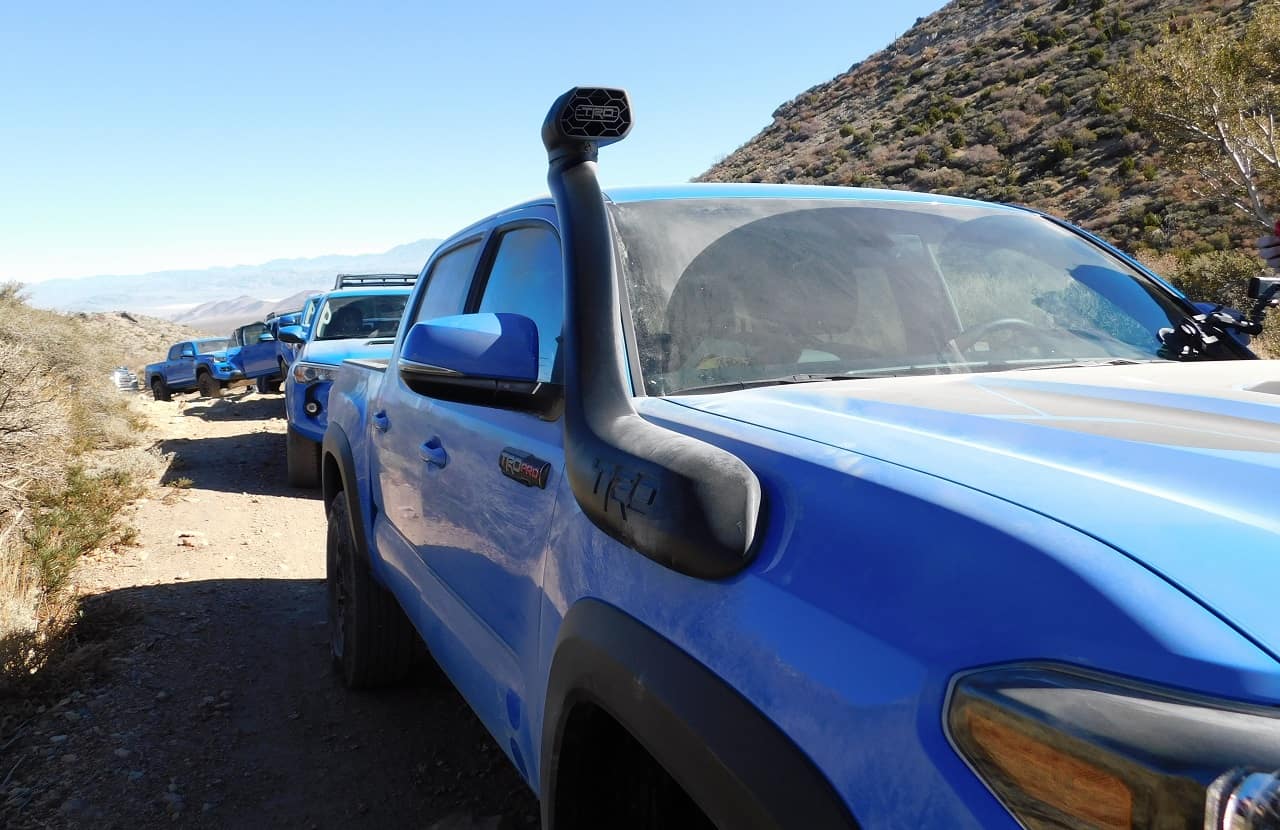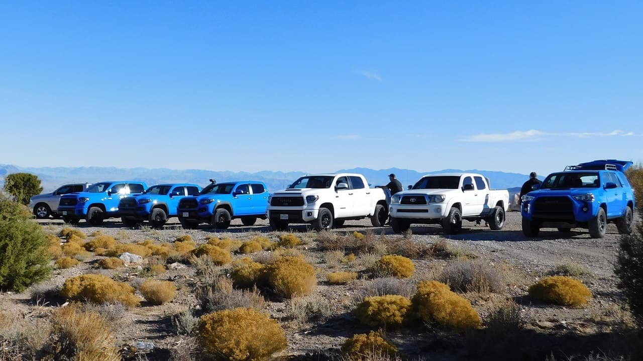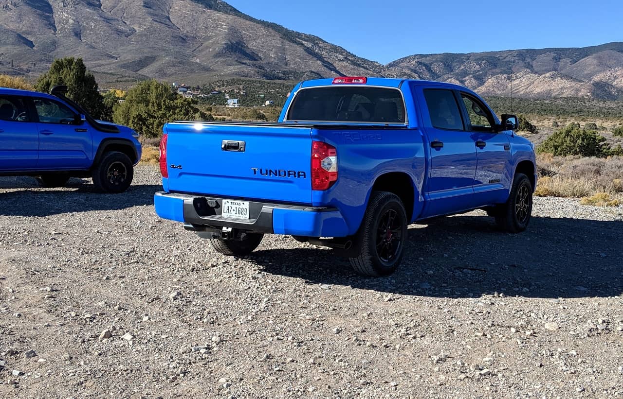 Continuing our coverage of the Trail Trek Tour, on day one we visited the SEMA show and went to a Baja 1000 qualifying with BFGoodrich Tires. Day two was the real fun day, where we were handed the keys to brand-new 2019 Toyota Tundra, Tacoma, and 4Runner, all in the TRD Pro trims, and finished in the TRD Pro exclusive Voodoo Blue colors. The objective of the day was to go to Wheeler Pass and see how these trucks preform off in the wilderness.