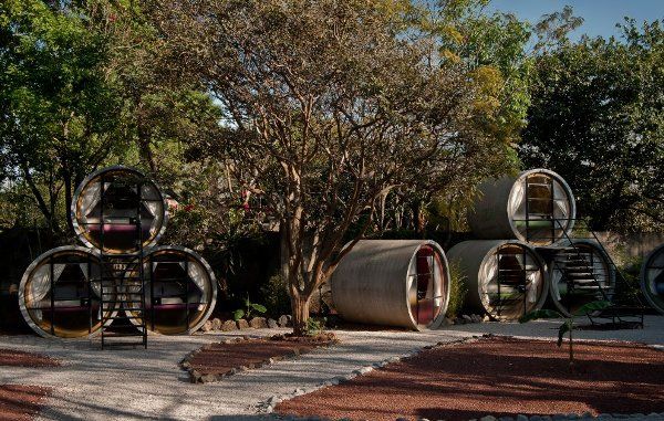 The Tubo Hotel is designed by T3arc Architecture and is a hotel where guests sleep in recycled concrete drainage pipes. To keep construction costs low, drainage pipes that didn’t meet the required specs to be used as drainage pipes were bought and converted into hotel rooms. To make better use of the available land, the concrete pipes were placed in a pyramid format, two at the bottom and one on top of them.