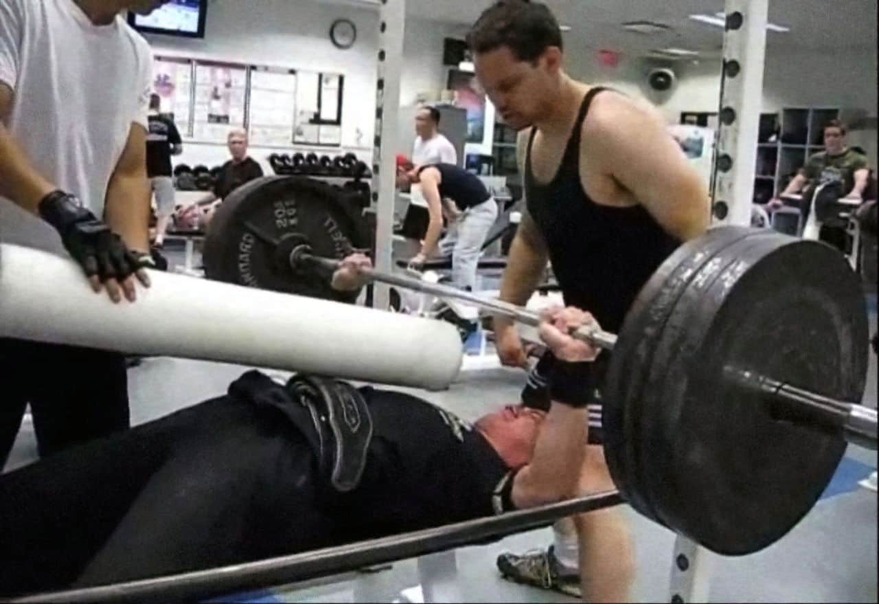 BY: 3 boards means that there is 3 2×4’s placed on my chest during the lift. The combined height equals 6”. This serves as a marker so that when I lower the bar to touch the 2×4’s I know I am lifting when it’s 6” above my chest. This principle is used to get the body used to handling the heavier weights gradually. If the lifting in training is successful with 3 boards, we then use 2 boards which make it 4” above my chest, then 1 board for 2” above, then finally a touch to the chest.