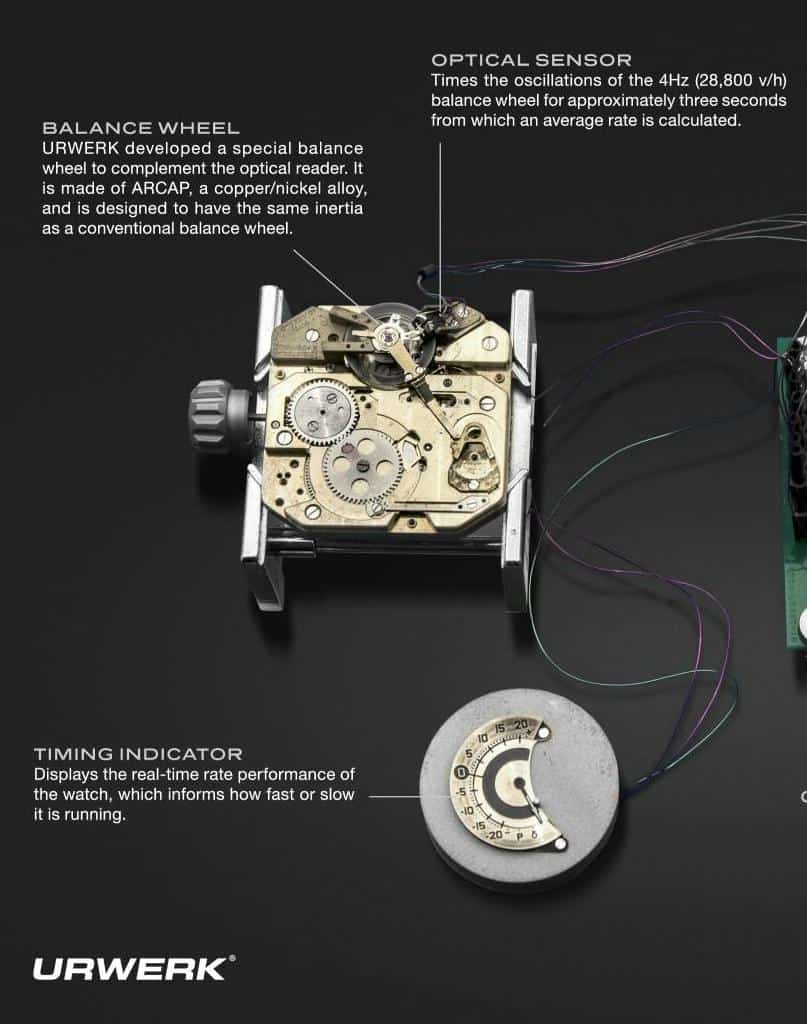 Last year we wrote about the Urwerk EMC watch, a watch that comes with an Electro Mechanical Control (hence the name); the watch comes with a built-in electric device that checks the accuracy of the mechanical movement. This is the first time a mechanical watch comes with a built-in accuracy checker, normally you’d need to connect the watch to an external machine to check how accurate it is.