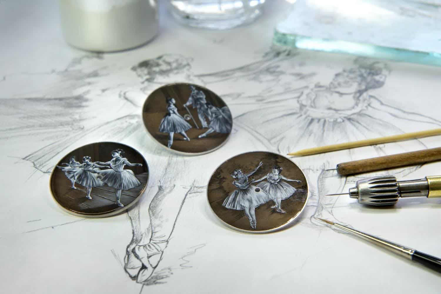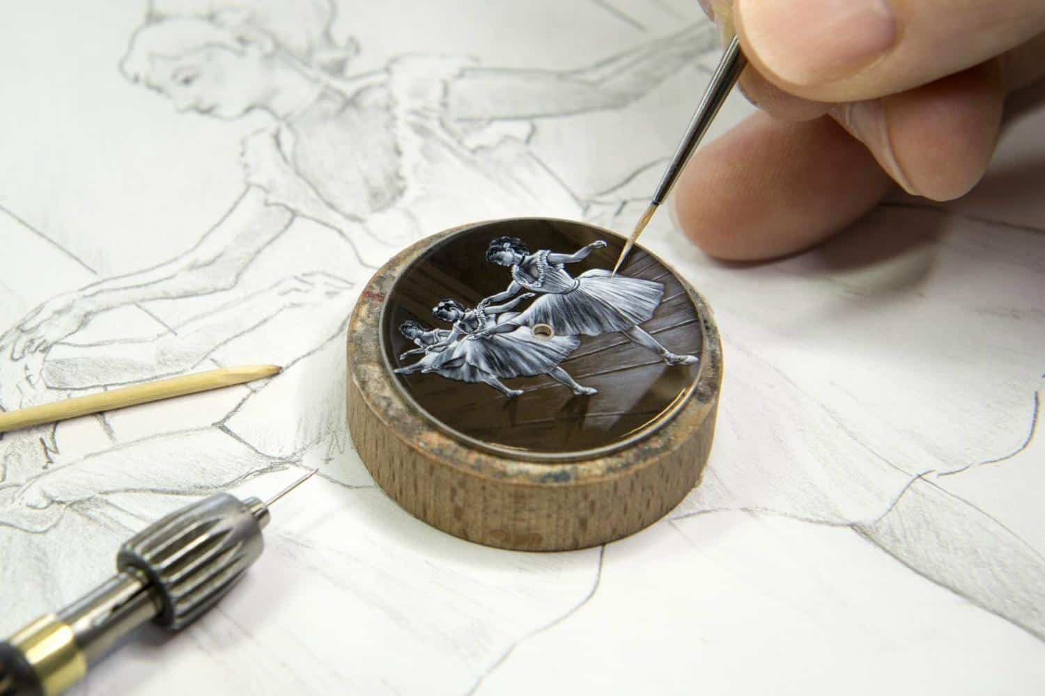The first set of watches celebrates the 300th anniversary of École Française de Danse, a ballet dance school in France. The watches are more like a work of art than time-telling devices; they’re inspired by the work of famous French artist Edgar Degas, known for his drawings of dancers.