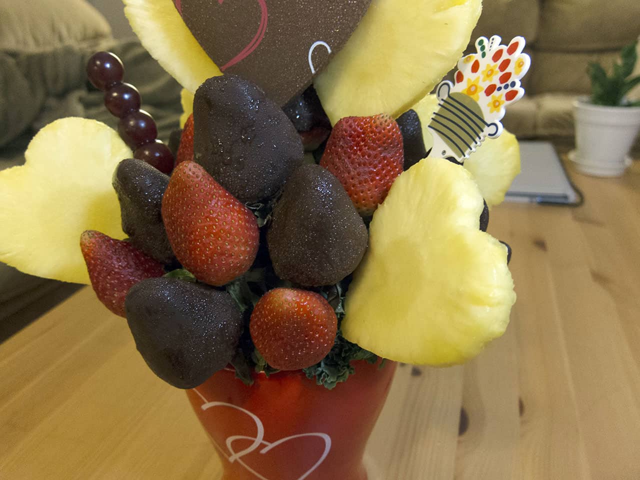 Flowers are so blasé. I mean, they’re beautiful, but they wilt after a day or so and then they’re kaput. I much prefer getting food as a gift – which is why I was so excited to receive an Edible Arrangements bouquet for my birthday a few weeks ago.