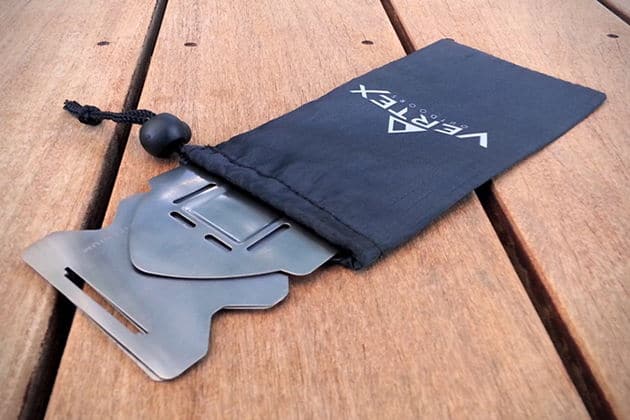 The Vertex stove comes with a drawstring nylon bag for easy storage and measures 4.84” x 2.87” x 3.0” when assembled. The suggested post size is at least 3.5” diameter. For a pledge of $50 or more, you can reserve yourself one of these lightweight portable stoves.
