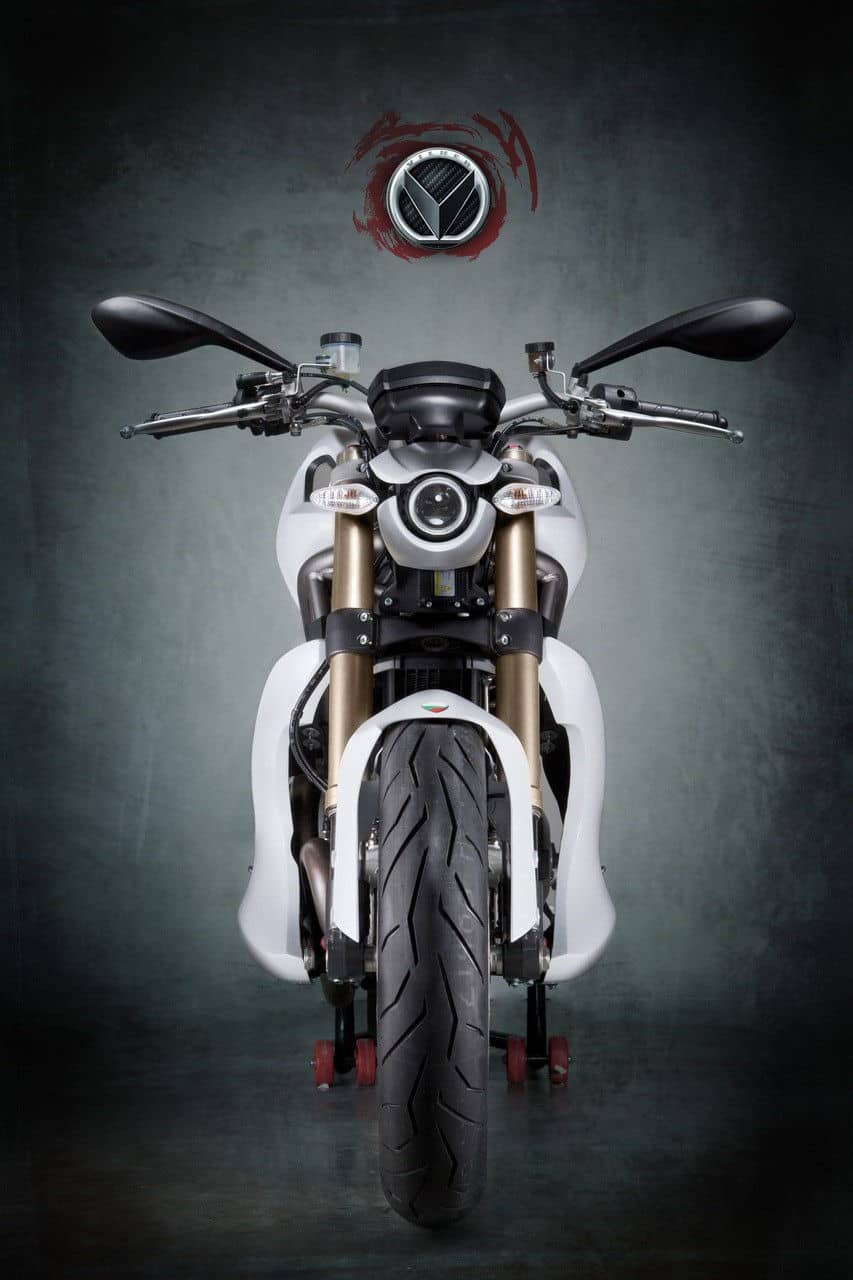 The upgrades on the bike include a stitched leather seat, partial leather covered fuel tank, a new headlight, aluminum holders on the front end of the frame, a pearl white paintjob, and two-tone rims. The girl with the dragon tattoo is not included. The Ducati Monster 1100 EVO’s engine gets a power boost and now produces 109 horsepower, up from 99 HP.