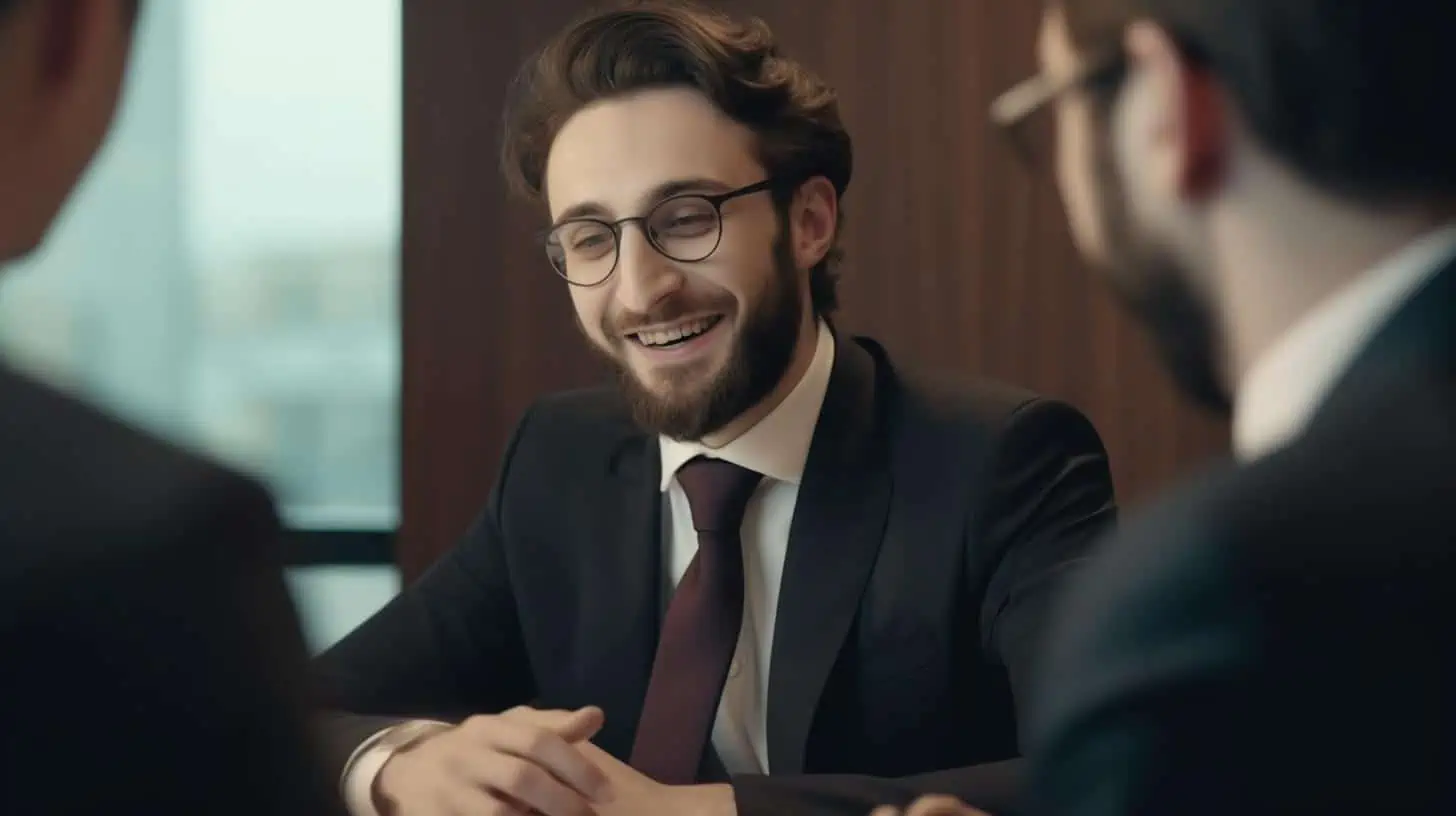 A woman meets with a personal injury attorney in a modern, professional office.